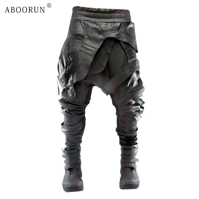 Leather Patchwork Flare Pants Mens