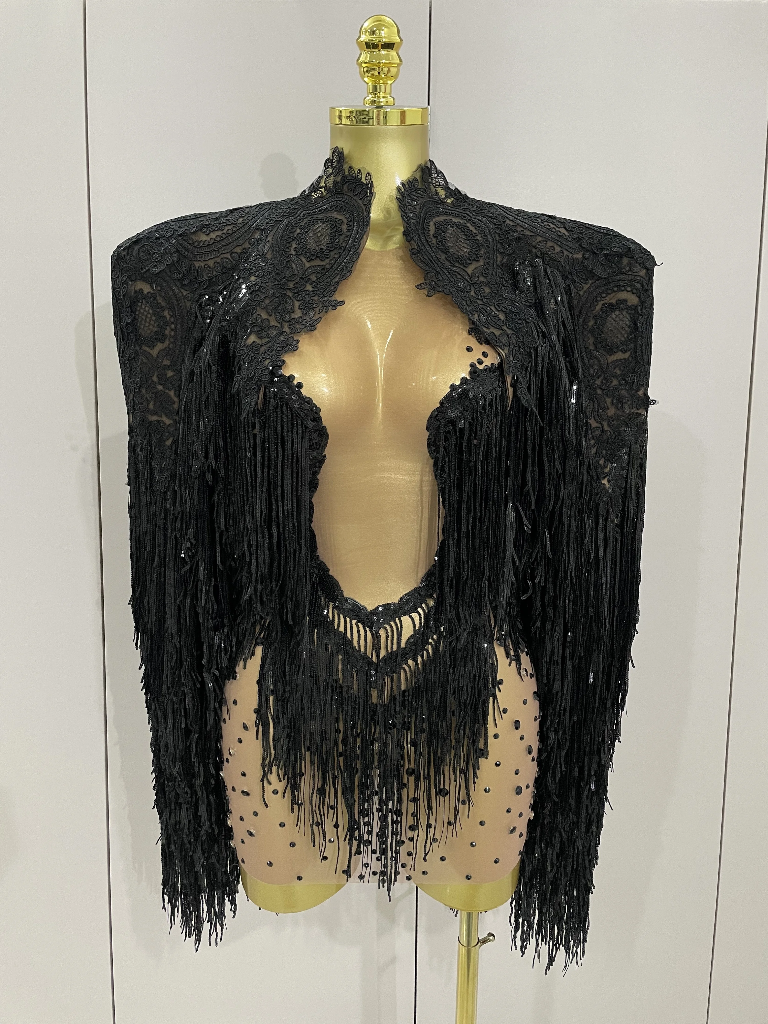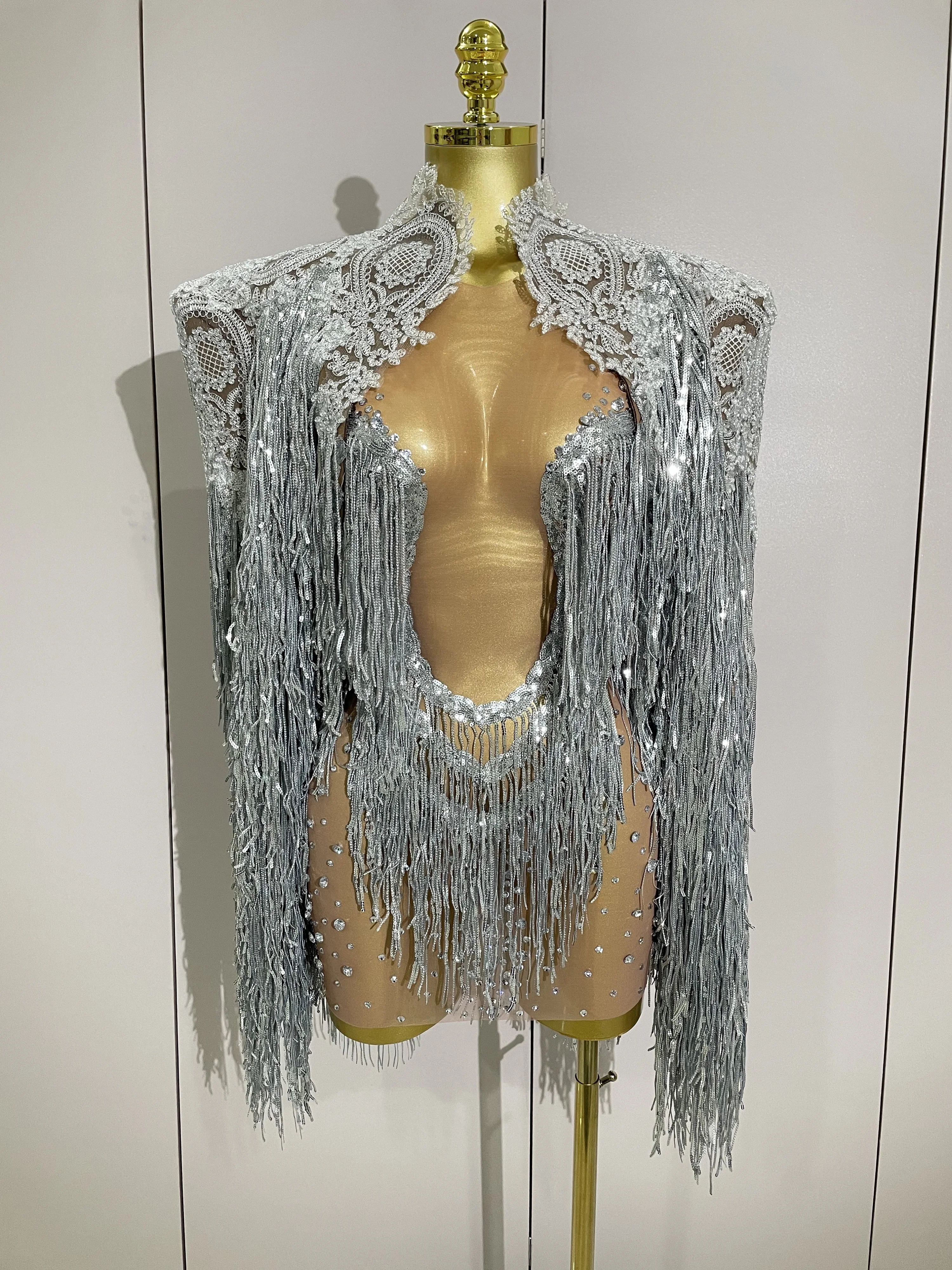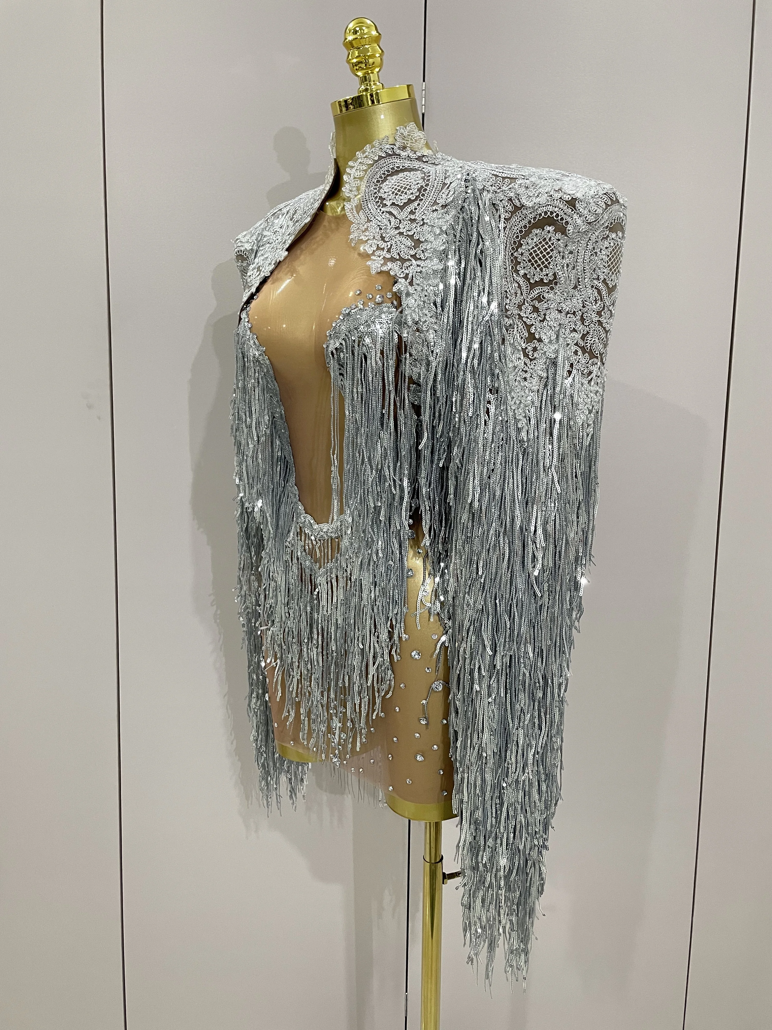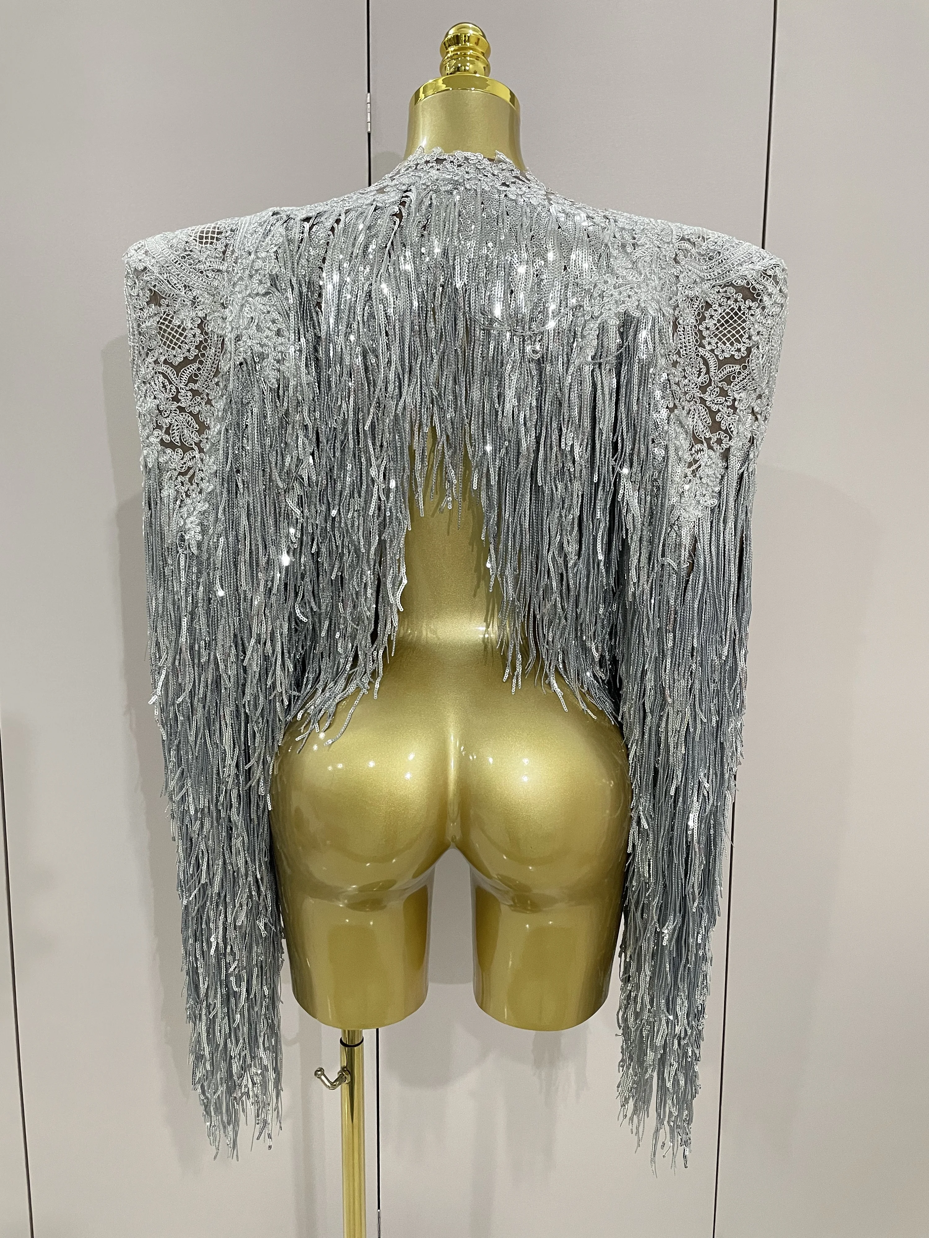 Women's Rhinestone Sequin Tassel Coat & Skirt Set