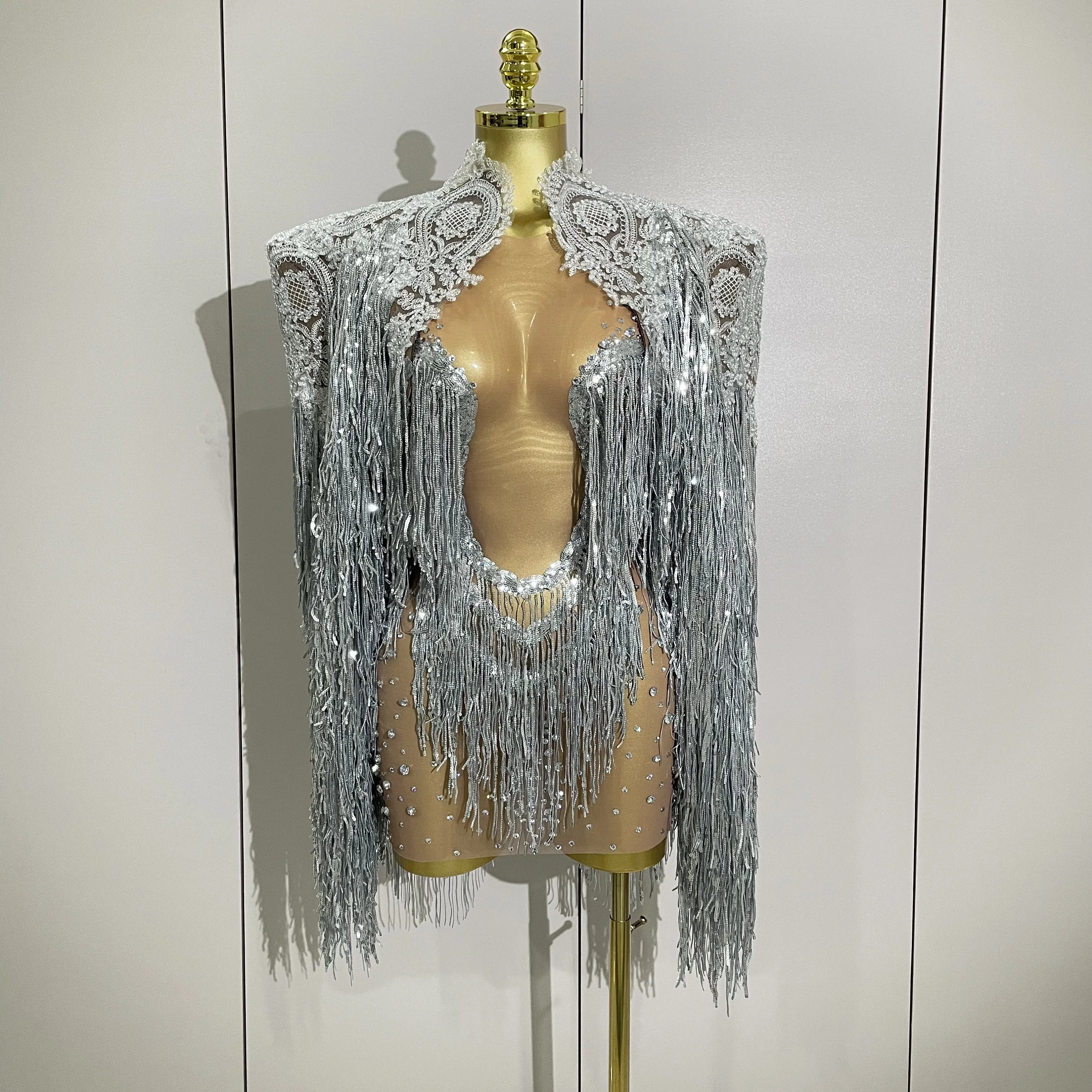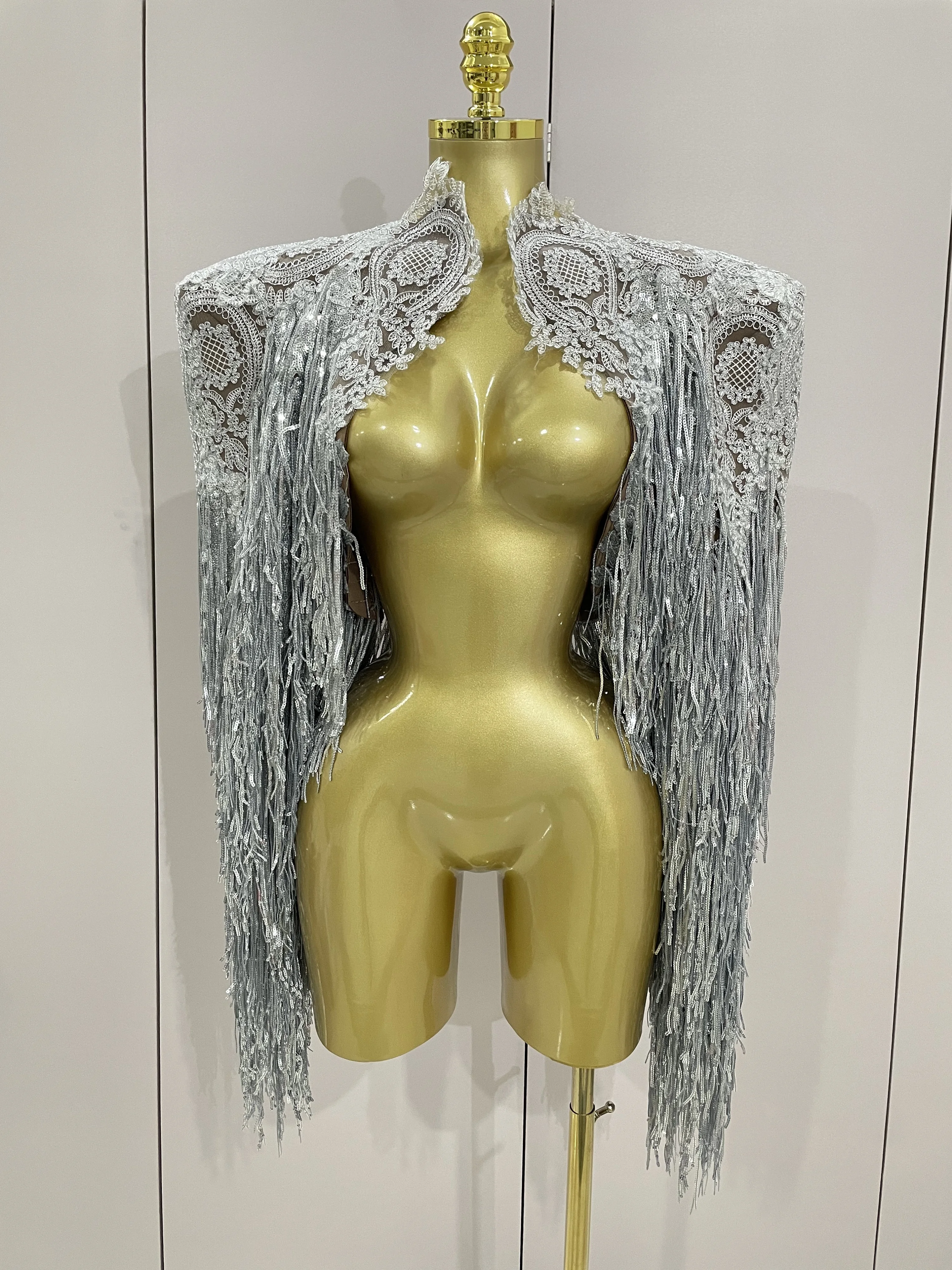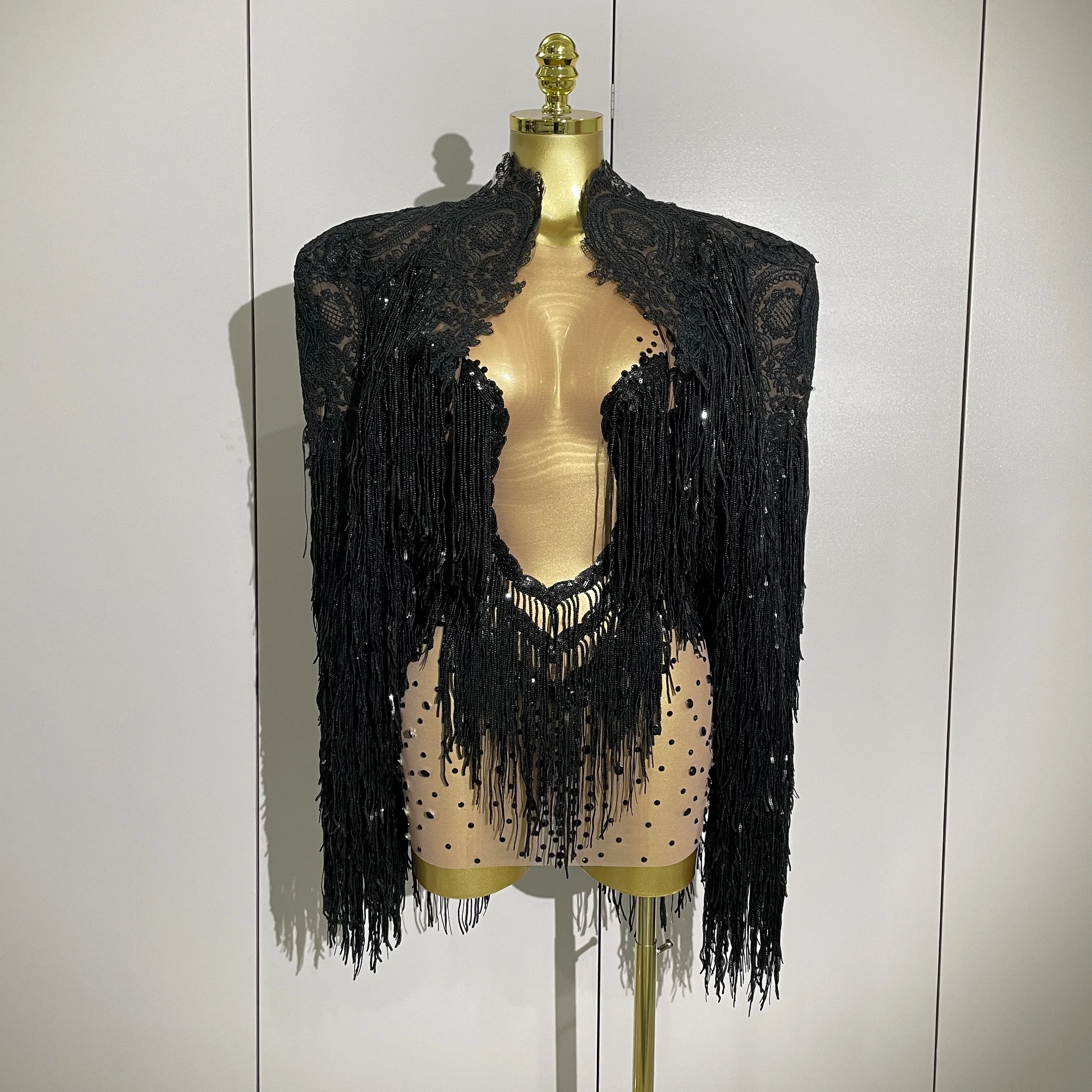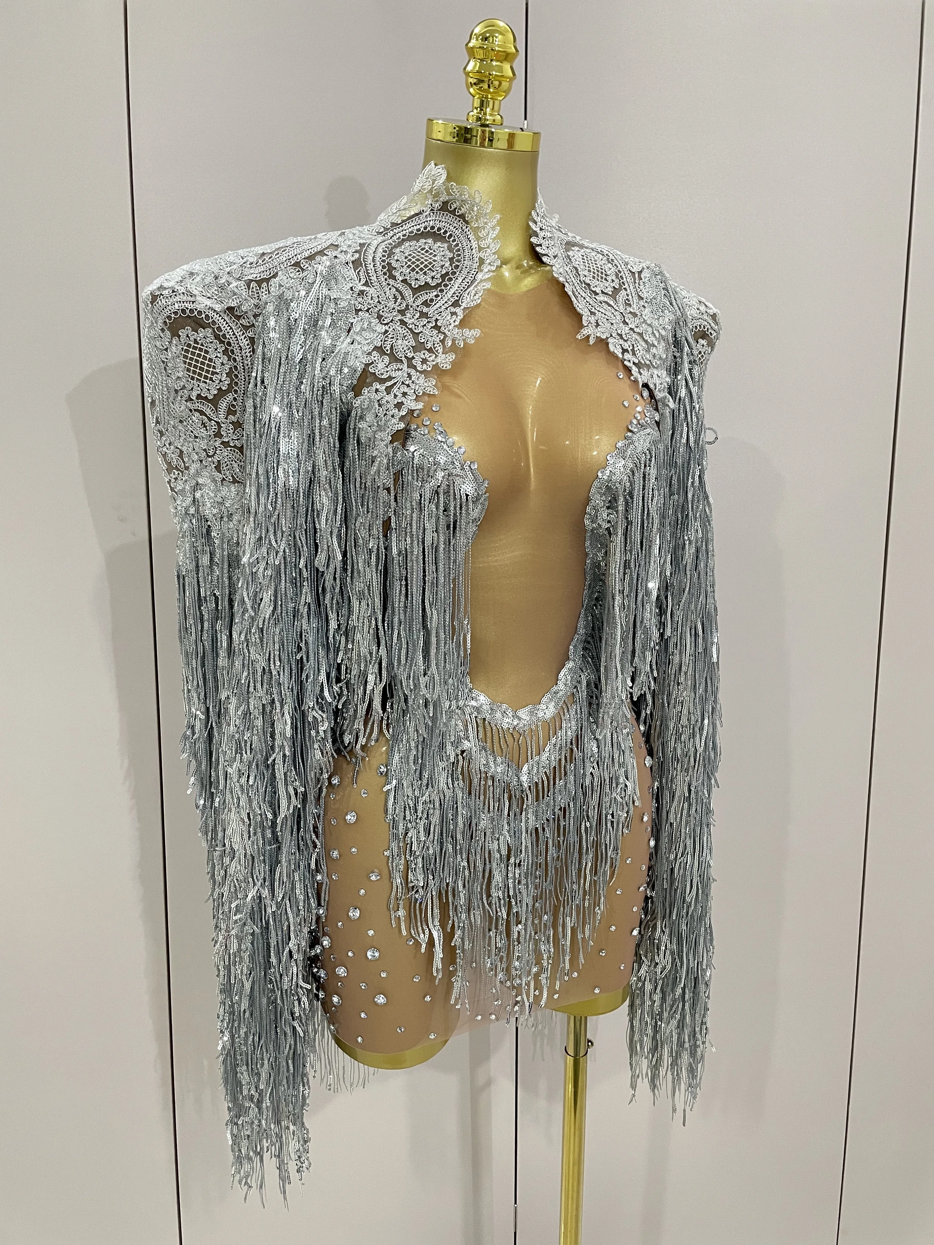 Women's Rhinestone Sequin Tassel Coat & Skirt Set