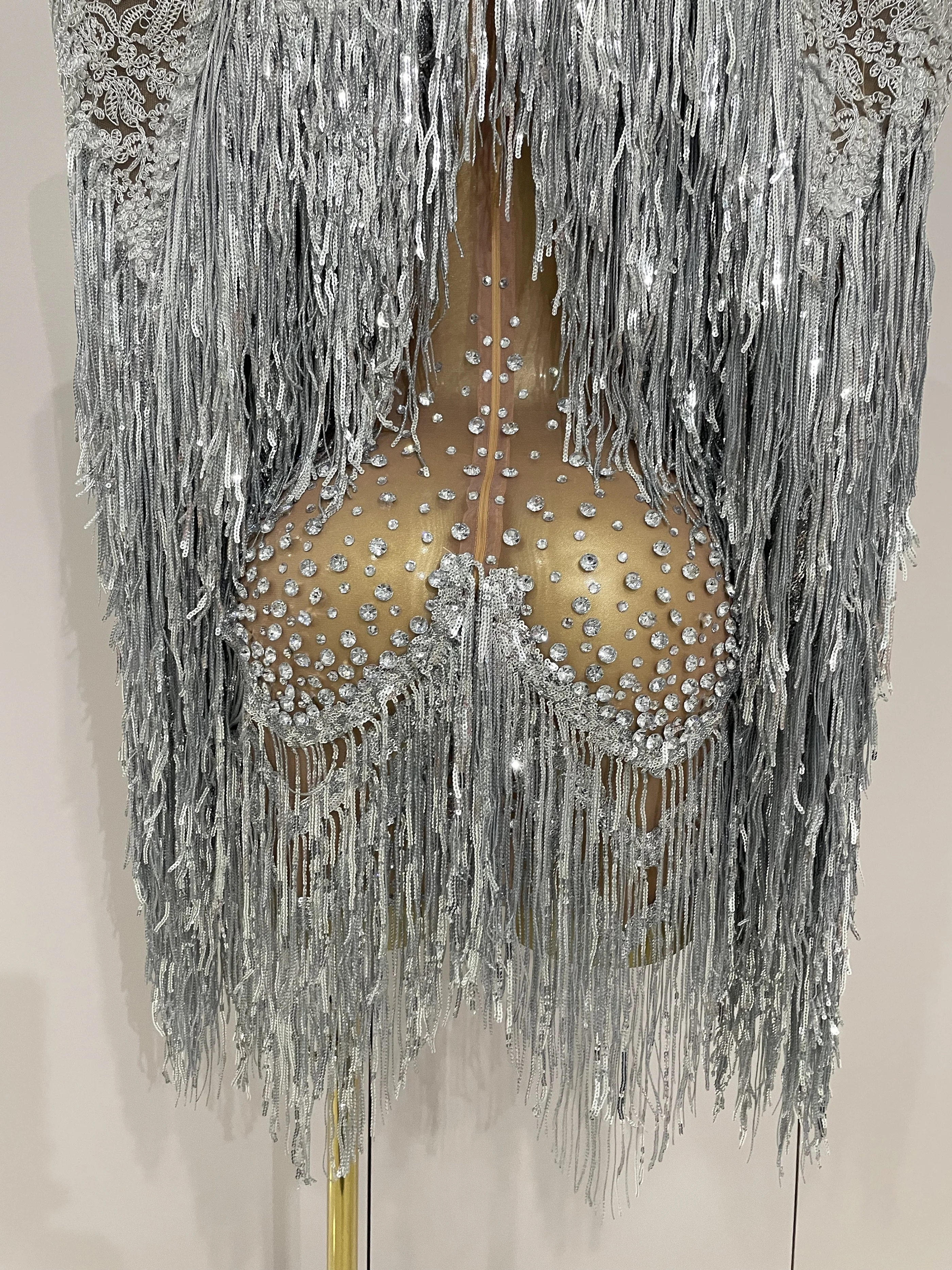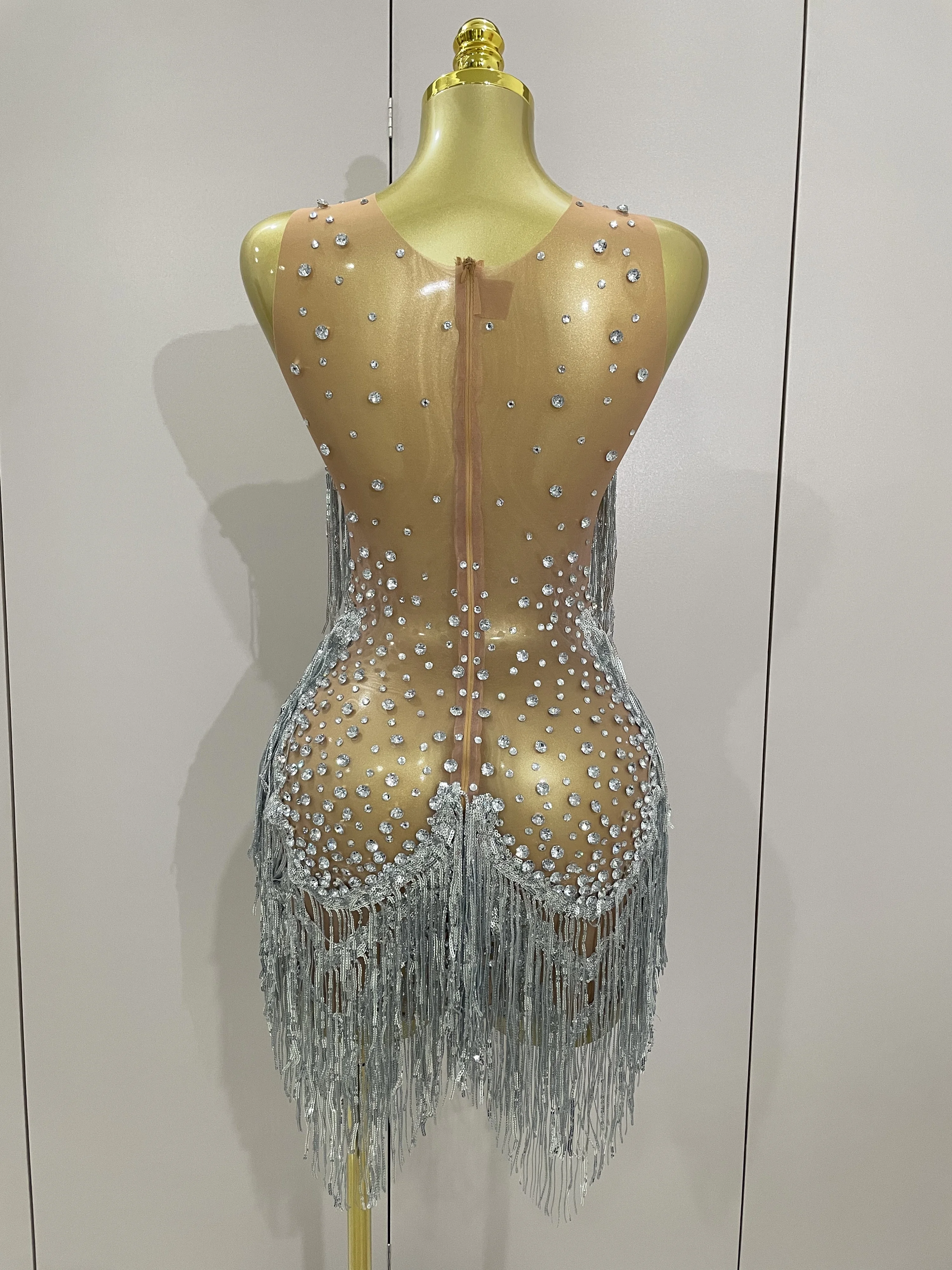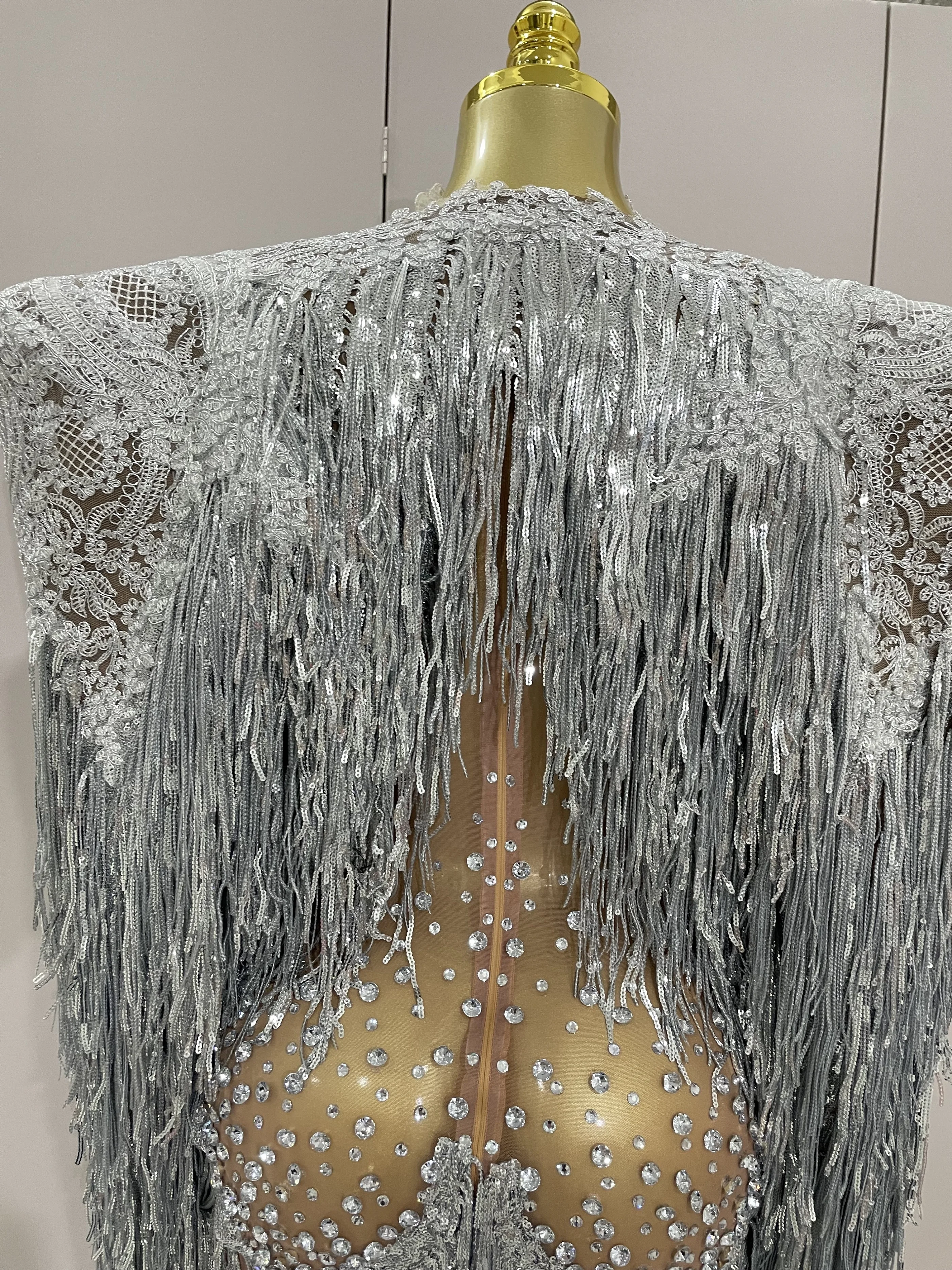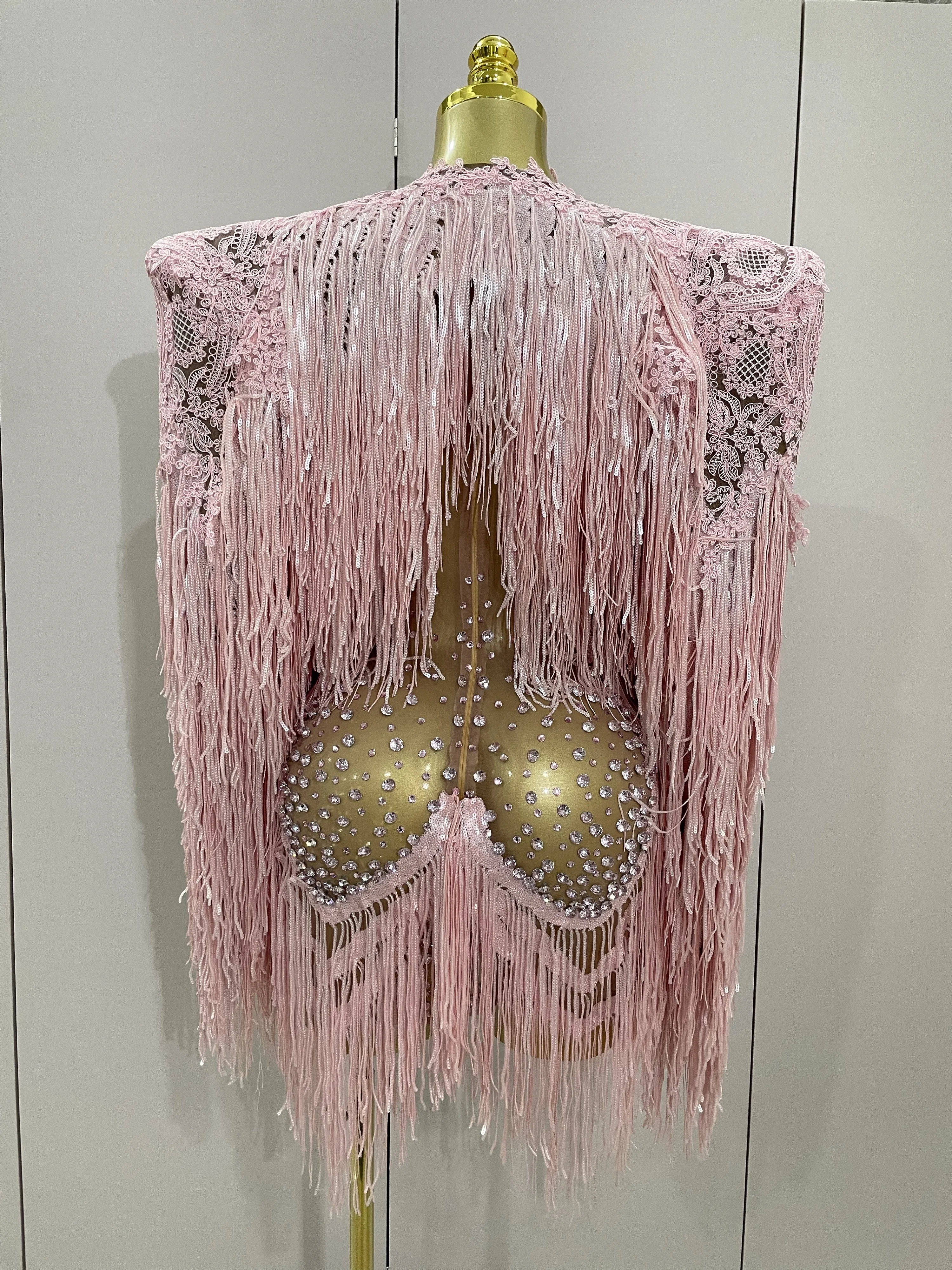 Women's Rhinestone Sequin Tassel Coat & Skirt Set