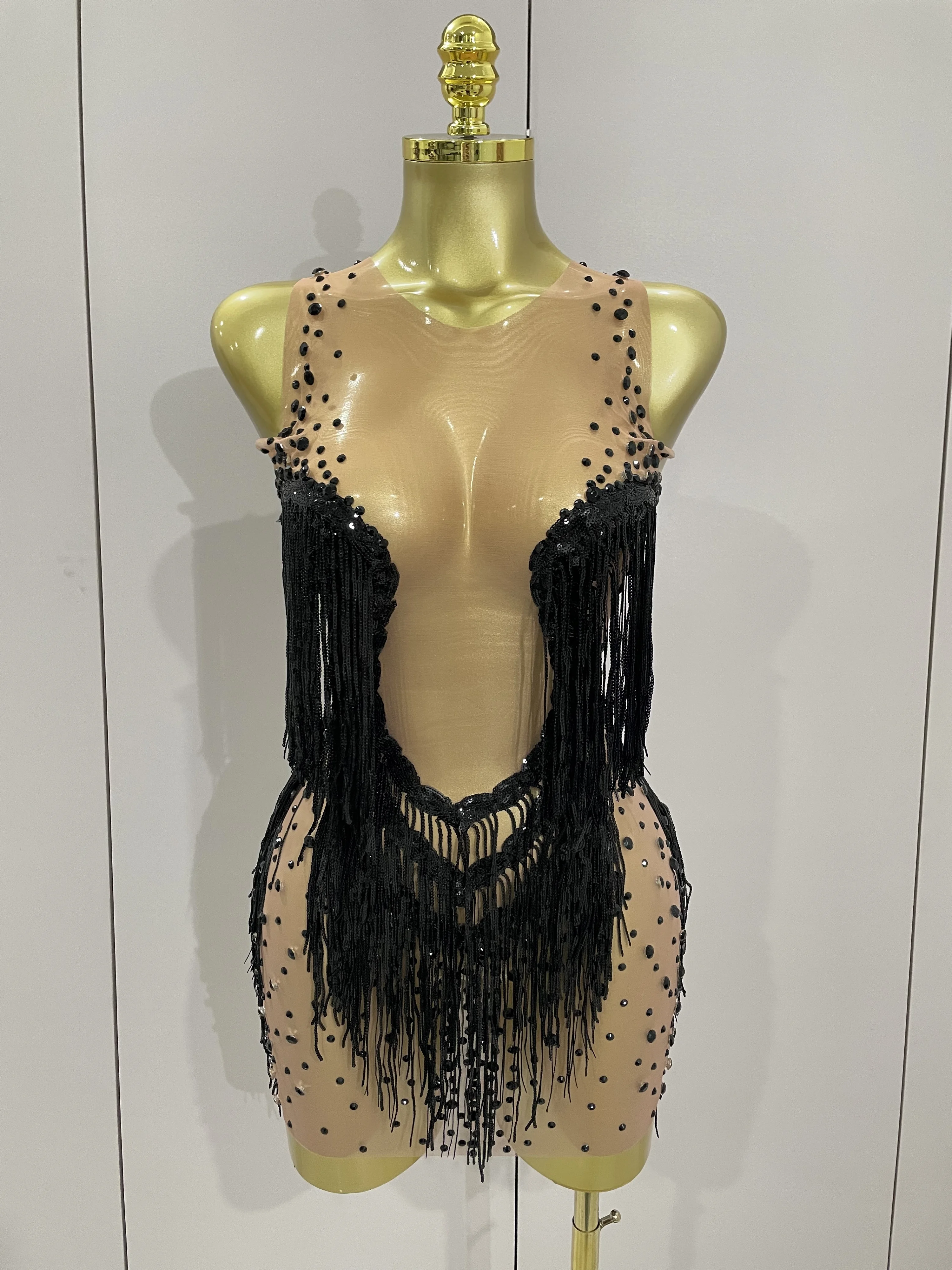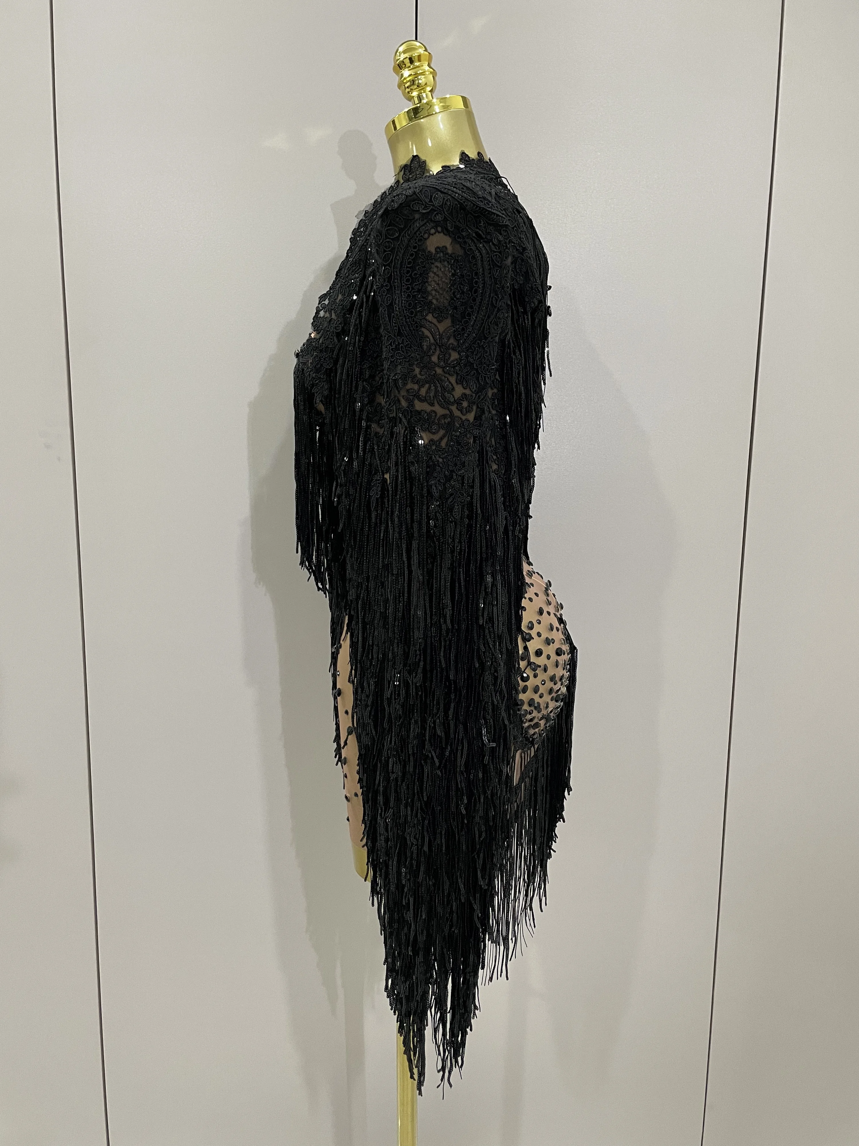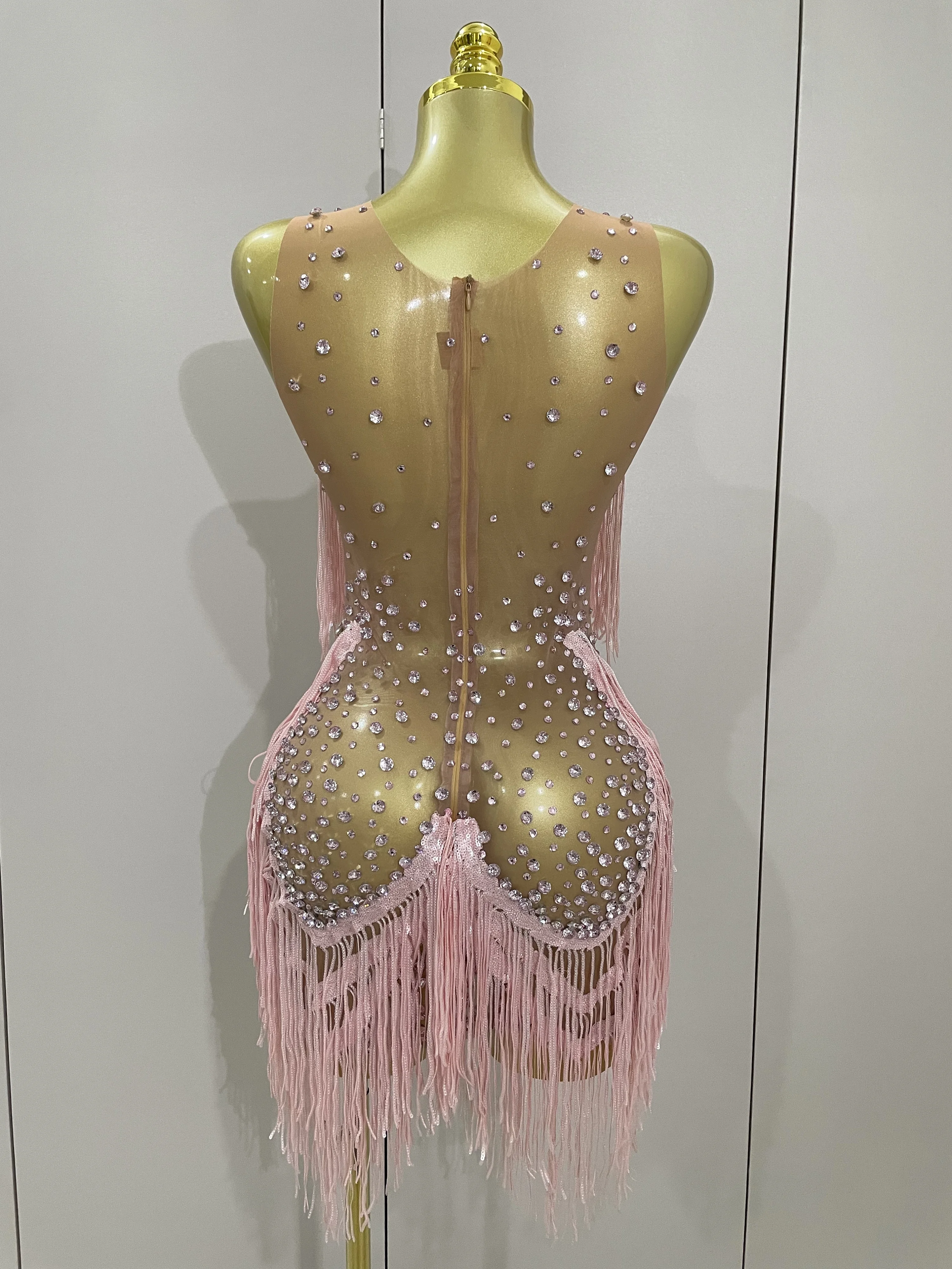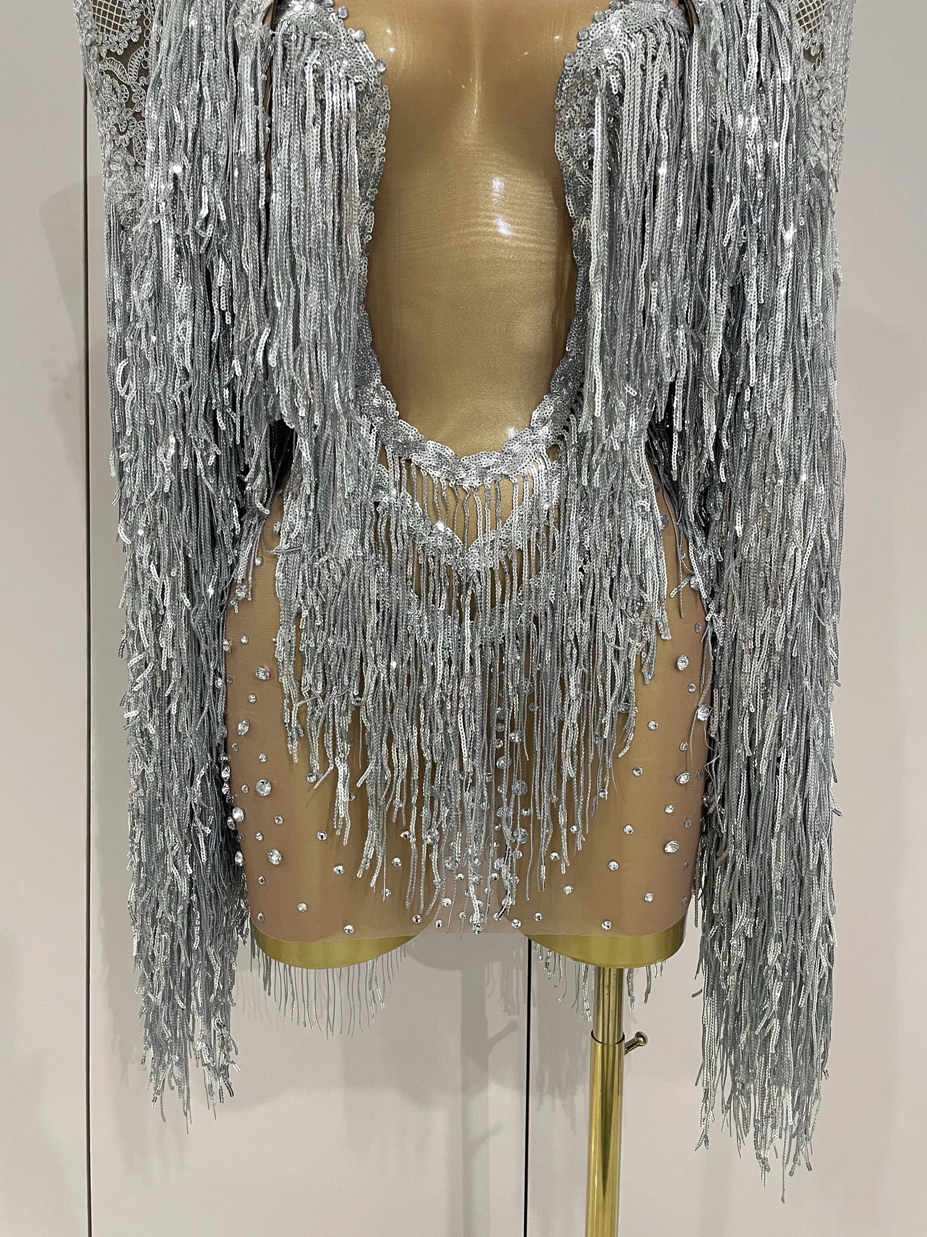 Women's Rhinestone Sequin Tassel Coat & Skirt Set